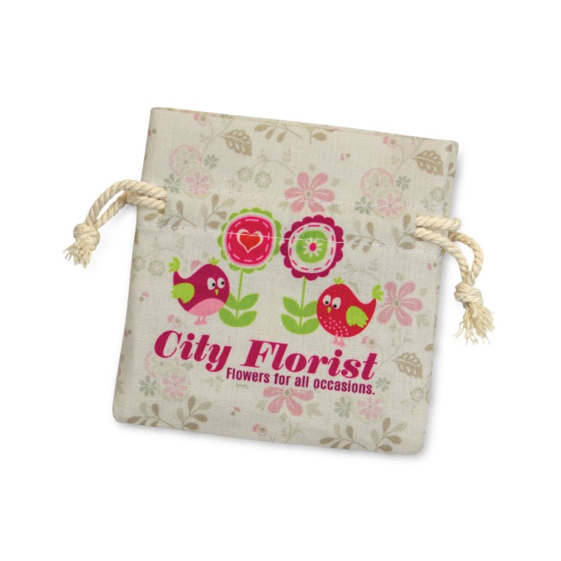 Стильная упаковка для украшений, выполненная из натурального хлопка. Маленький и удобный подарочный мешочек дополнен завязками. Текстурная ткань имеет естественный цвет неотбелённого хлопка, поэтому хорошо транслирует идеи экологичности и отказа от лишнего пластика. Полноцветная печать доступна на обеих сторонах.