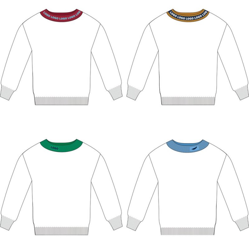 Вязаная горловина с вывязанным логотипом или просто в фирменной цветовой гамме.