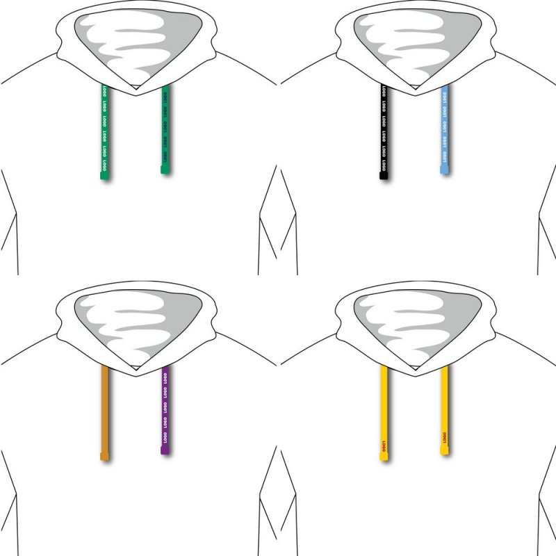 Лента с вывязанным логотипом или индивидуальным рисунком в фирменной цветовой гамме — оригинальная замена шнурка в капюшоне.