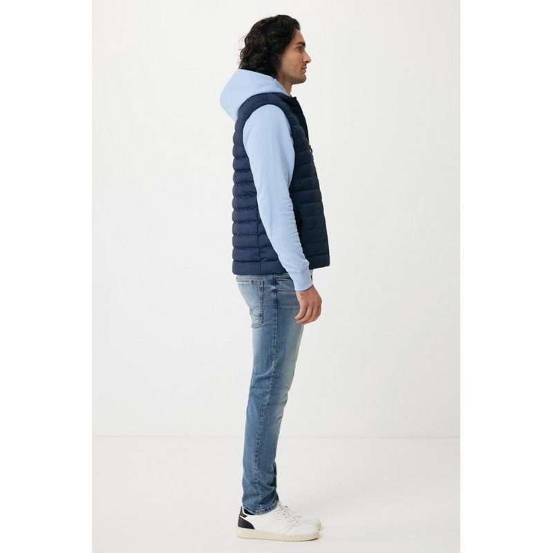 Стеганый жилет Meru согреет даже в самые холодные дни. Это экологичное решение: безрукавка на 100% изготовлена из переработанного полиэстера — в том числе, из него сделан и утеплитель. Жилет и карманы застегиваются на молнии со скрытой спиралью: это делает застежку водонепроницаемой. Пуллеры (собачки) молнии окрашены в тон жилету. Его можно носить как под основной курткой, так и в качестве верхней одежды осенью или весной. Ткань, из которой он изготовлен, успешно защищает от влаги благодаря водоотталкивающей пропитке. Тонкий, легкий, но теплый жилет подойдет для занятий спортом, прогулок и поездок. Плотность материала — 70 г/м². Сертифицировано OEKO-TEX® STANDARD 100. Сертифицировано AWARE™. Наличие индикаторных частиц AWARE™ подтверждает, что мы действительно используем переработанные материалы. 2% с продажи каждой вещи, отмеченной сертификатом AWARE™, мы перечисляем в поддержку всемирной организации Water.org.