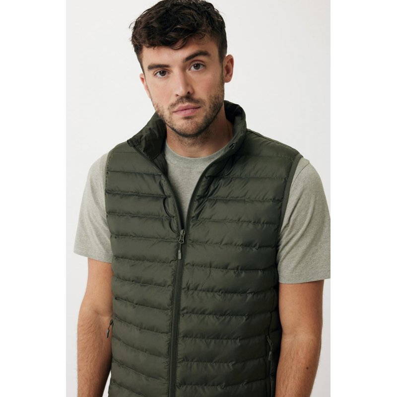 Стеганый жилет Meru согреет даже в самые холодные дни. Это экологичное решение: безрукавка на 100% изготовлена из переработанного полиэстера — в том числе, из него сделан и утеплитель. Жилет и карманы застегиваются на молнии со скрытой спиралью: это делает застежку водонепроницаемой. Пуллеры (собачки) молнии окрашены в тон жилету. Его можно носить как под основной курткой, так и в качестве верхней одежды осенью или весной. Ткань, из которой он изготовлен, успешно защищает от влаги благодаря водоотталкивающей пропитке. Тонкий, легкий, но теплый жилет подойдет для занятий спортом, прогулок и поездок. Плотность материала — 70 г/м². Сертифицировано OEKO-TEX® STANDARD 100. Сертифицировано AWARE™. Наличие индикаторных частиц AWARE™ подтверждает, что мы действительно используем переработанные материалы. 2% с продажи каждой вещи, отмеченной сертификатом AWARE™, мы перечисляем в поддержку всемирной организации Water.org.