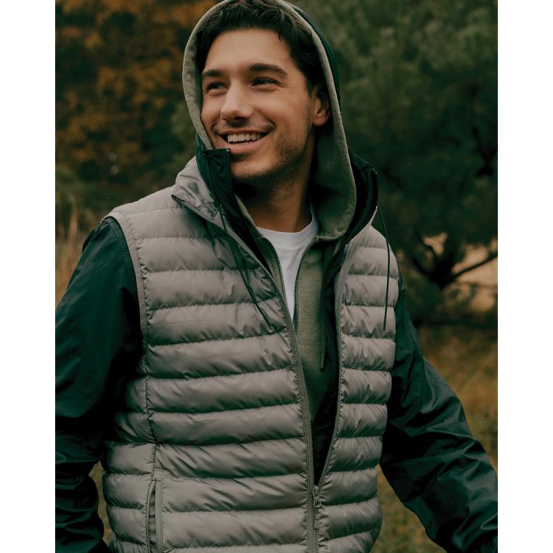 Стеганый жилет Meru согреет даже в самые холодные дни. Это экологичное решение: безрукавка на 100% изготовлена из переработанного полиэстера — в том числе, из него сделан и утеплитель. Жилет и карманы застегиваются на молнии со скрытой спиралью: это делает застежку водонепроницаемой. Пуллеры (собачки) молнии окрашены в тон жилету. Его можно носить как под основной курткой, так и в качестве верхней одежды осенью или весной. Ткань, из которой он изготовлен, успешно защищает от влаги благодаря водоотталкивающей пропитке. Тонкий, легкий, но теплый жилет подойдет для занятий спортом, прогулок и поездок. Плотность материала — 70 г/м². Сертифицировано OEKO-TEX® STANDARD 100. Сертифицировано AWARE™. Наличие индикаторных частиц AWARE™ подтверждает, что мы действительно используем переработанные материалы. 2% с продажи каждой вещи, отмеченной сертификатом AWARE™, мы перечисляем в поддержку всемирной организации Water.org.