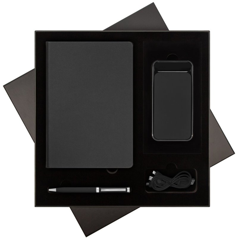 Подарочный набор Verona, черный (ежедневник, ручка, аккумулятор)