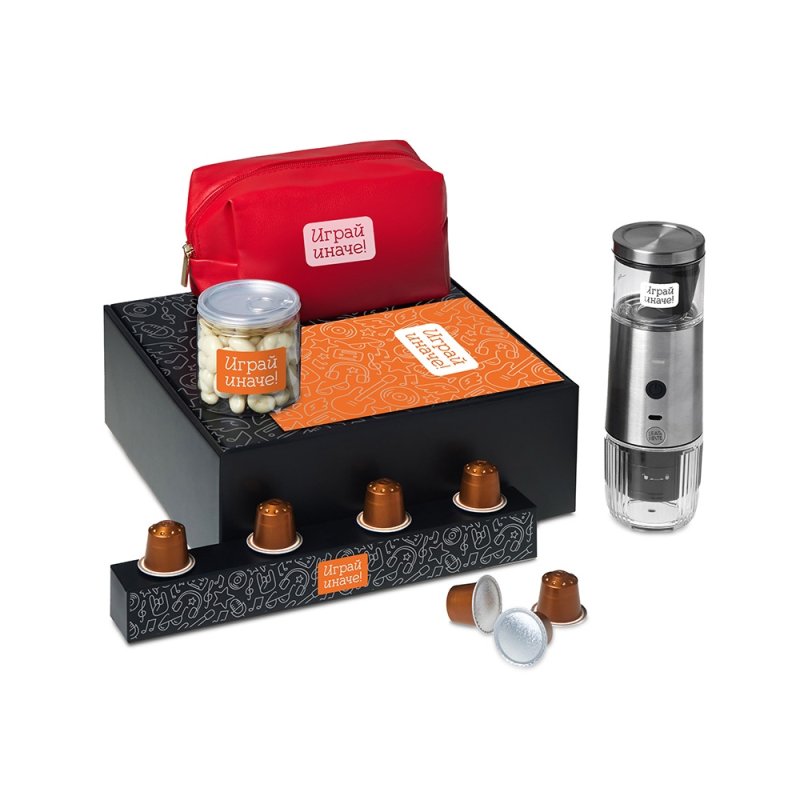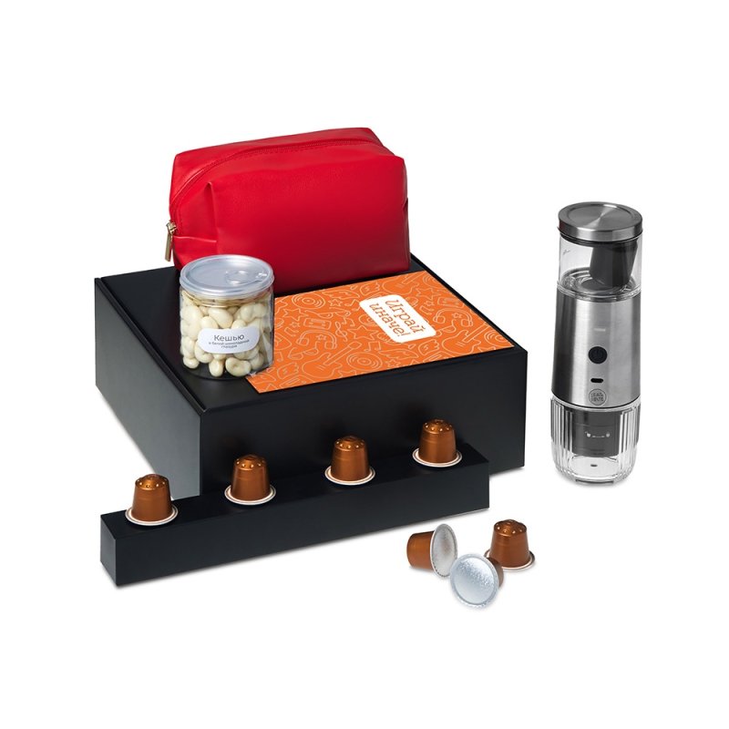Набор Re:y. Boost о бодрости, энергии и маленьких ритуалах, которые можно взять с собой. Портативная кофемашина и кофе в капсулах позволяют приготовить ароматный напиток дома, в офисе или на прогулке. Кешью в глазури добавляет сладкую нотку, а косметичка позволяет взять любимые вещи с собой, куда бы вы ни отправились.. Этот набор превращает привычный утренний ритуал в момент бодрости и комфорта, где бы вы ни были.