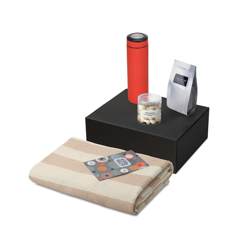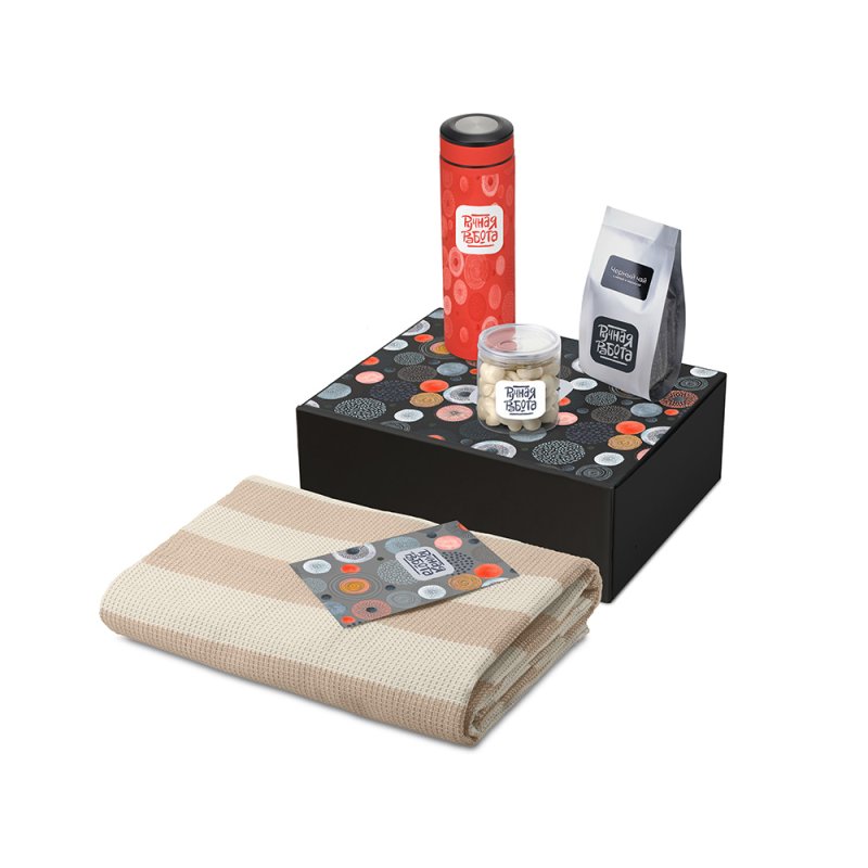 - Материал товара:плед - 100% хлопок, термос - нержаваеющая сталь с покрытием soft-touch, чай - пластик, мешок - нетканый материал (спанбонд), коробка - картон