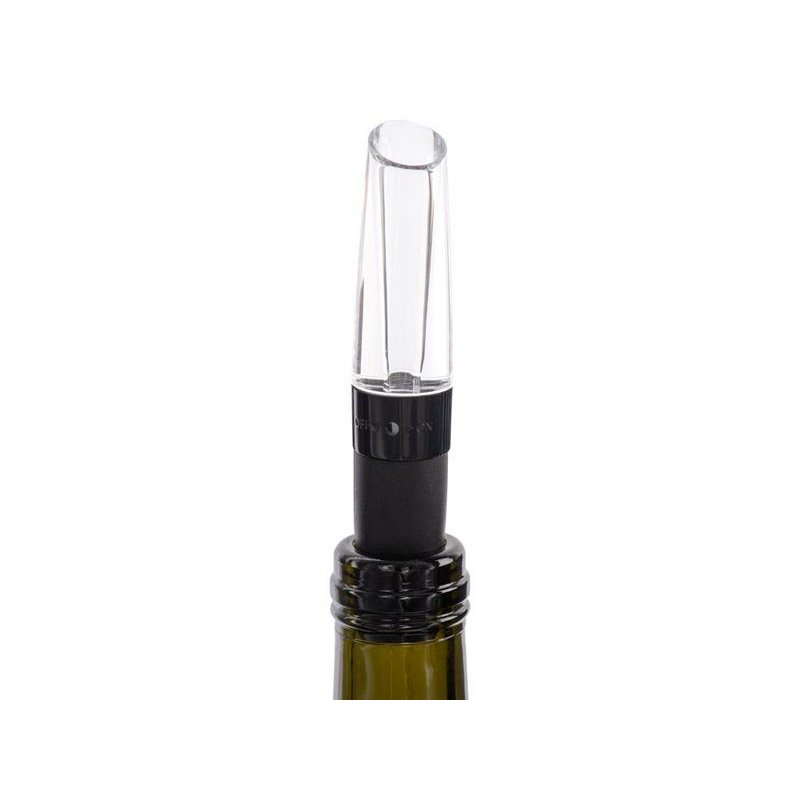 Силиконовая вставка отвечает за плотное прилегание к горлышку бутылки, а прозрачная акриловая вставка позволяет насладиться видом разливающегося вина.