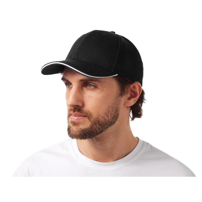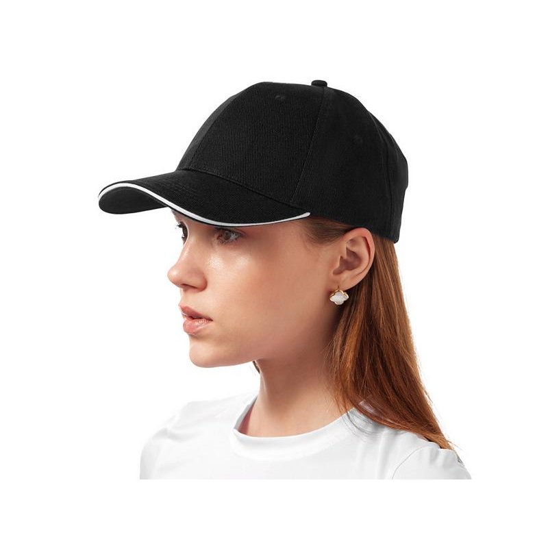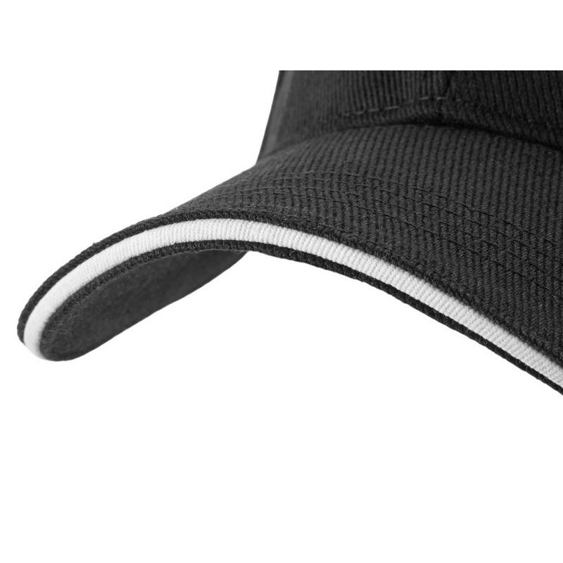 Стильный контрастный кант по козырьку и заднему хлястику добавляет изделию выразительности и делает бейсболку заметным элементом образа.
