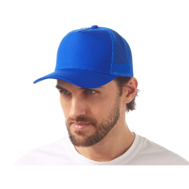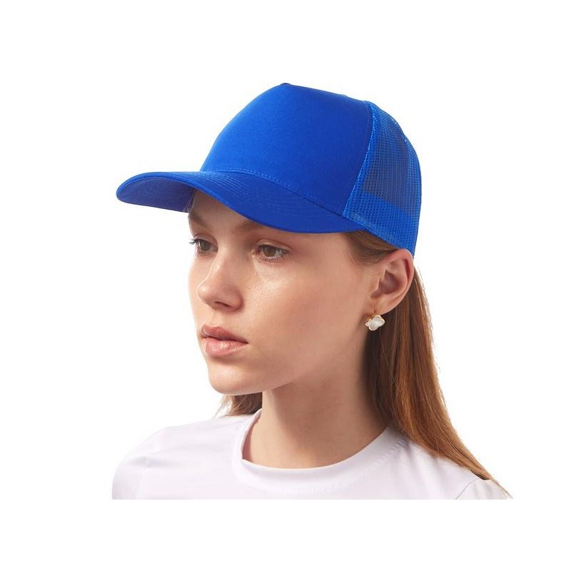 Пяти панельная бейсболка с передней частью из хлопка для комфорта головы и лба. Задняя часть из пластиковой сетки, которая отвечает за циркуляцию воздуха и обеспечивает изделию износостойкость. Для подгонки по размеру головы — пластиковая застежка.
