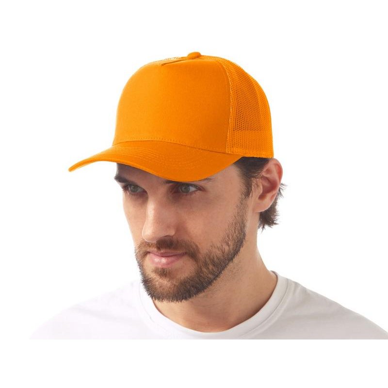 Пяти панельная бейсболка с передней частью из хлопка для комфорта головы и лба. Задняя часть из пластиковой сетки, которая отвечает за циркуляцию воздуха и обеспечивает изделию износостойкость. Для подгонки по размеру головы — пластиковая застежка.