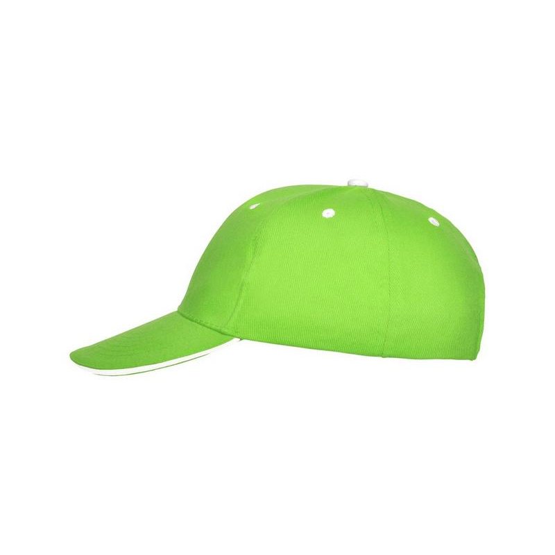 6-панельная бейсболка с контрастными деталями. Шесть контрастных обшитых вентиляционных отверстий. Козырек с 6 отделочными строчками. Внутренняя лента для защиты от пота. Застежка на липучке.