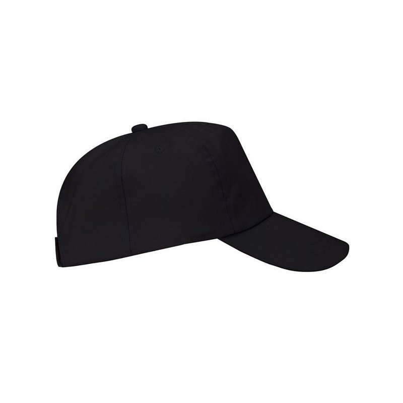Бейсболка из 5 панелей, два вышитых вентиляционных люверса. Застежка на липучку.