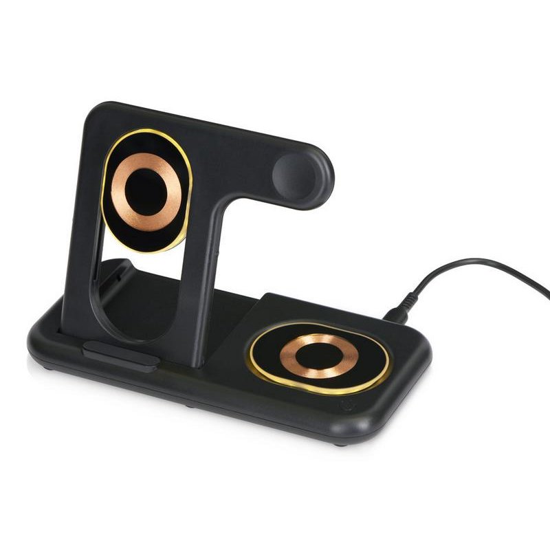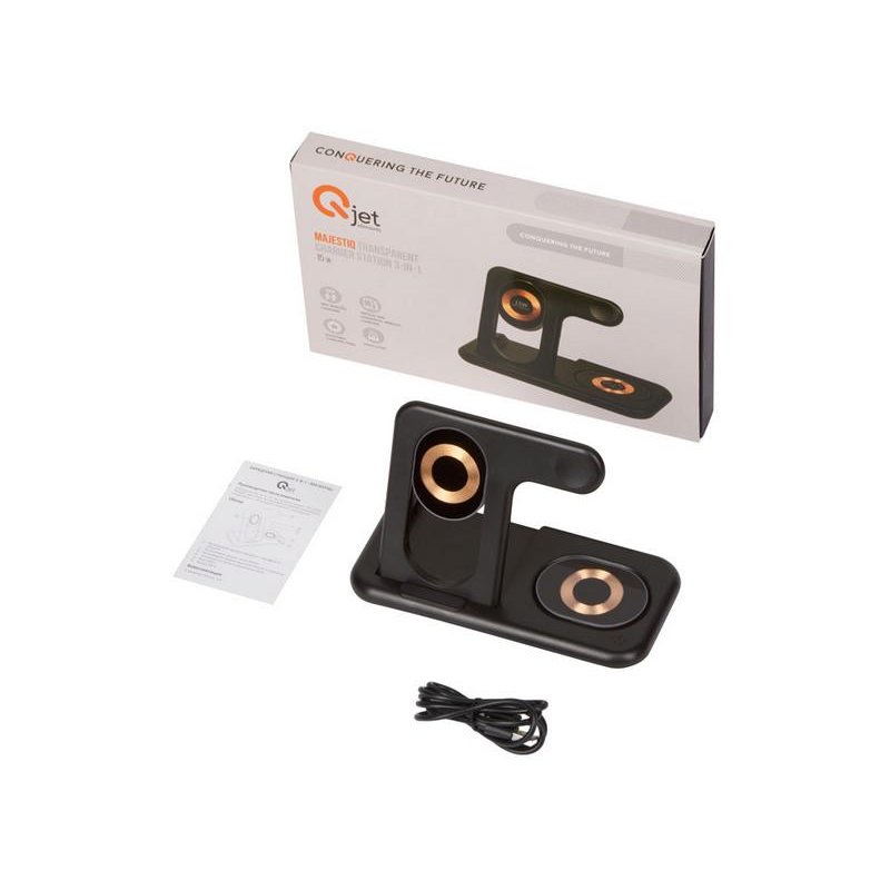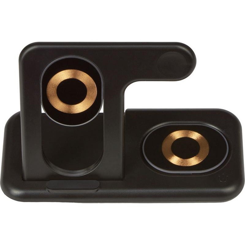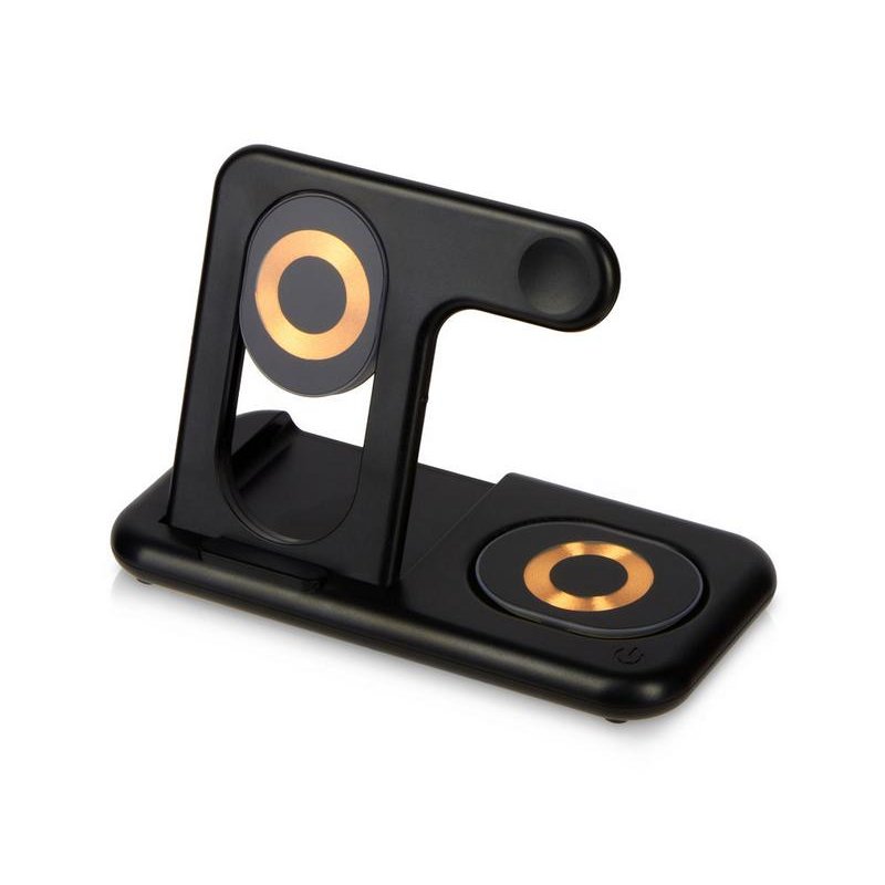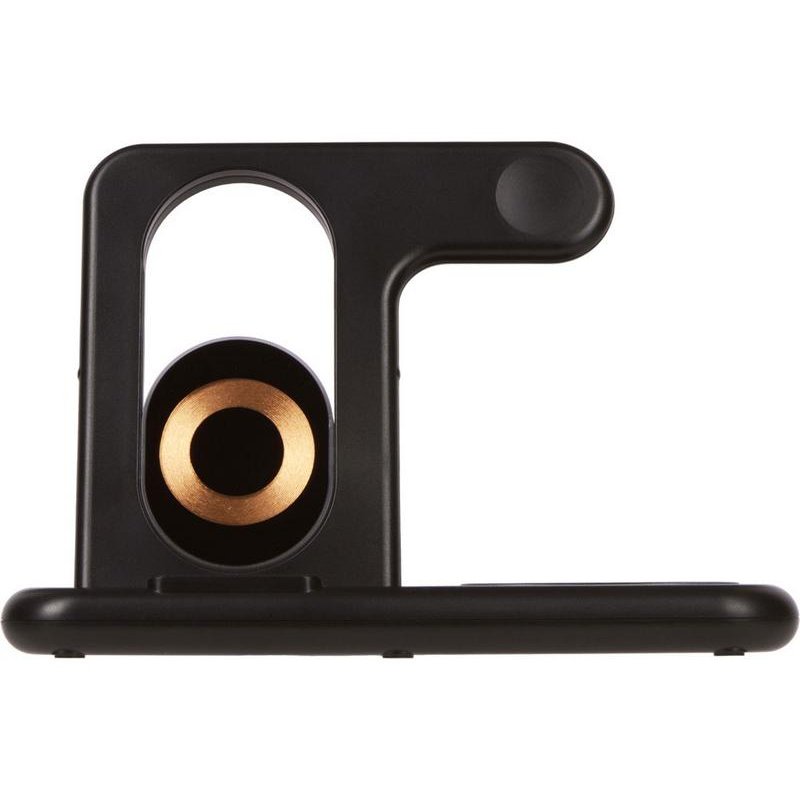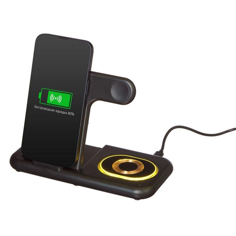 Беспроводная зарядная станция на 3 устройства MajestiQ с прогрессивным дизайном: модуль беспроводной зарядки в вертикальном сегменте станции может менять свое положение по принципу слайдера. Это позволяет настроить положение под размер любого смартфон, не снимая чехла. На станции можно заряжать три беспроводных устройства одновременно: смарт-часы Apple,смартфон ибеспроводные наушники. Вместо наушников можно расположить для зарядки второй смартфон. MajestiQ поддерживает быструю беспроводную зарядку 15 Вт. * В зарядные модули встроена атмосферная подсветка с тремя уровнями яркости. Поставляется в сложенном виде, угол наклона можно выставить практически любой.