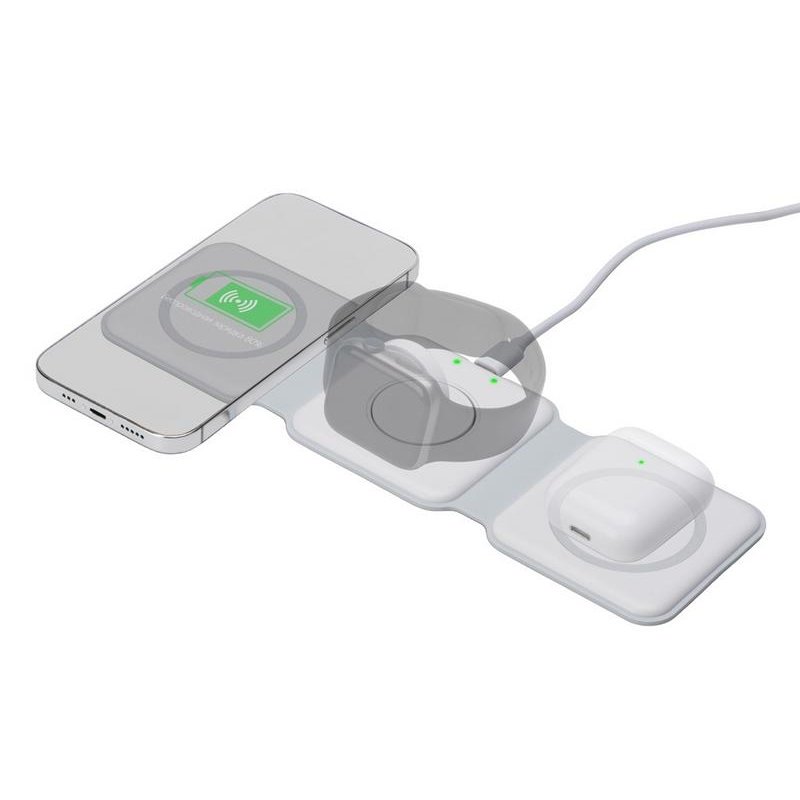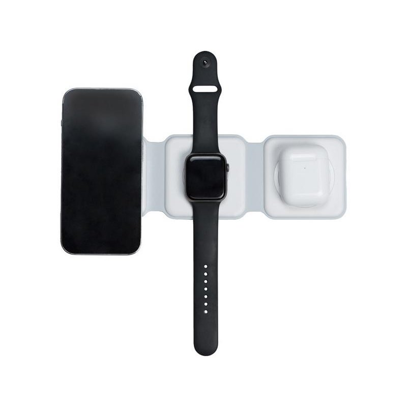 Беспроводная зарядная станция 3 в 1 — это современное решение для быстрой и удобной зарядки ваших устройств. Эта компактная и практичная модель позволяет заряжать сразу три устройства одновременно- любой смартфона и наушники с поддержкой беспроводной зарядки по протоколу Qi, и часы Apple.