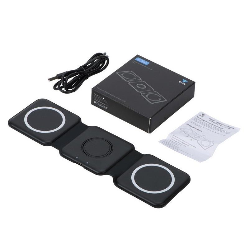 - Комплектность:складная станция с беспроводной зарядкой, зарядный кабель USB-Type C, руководство пользователя