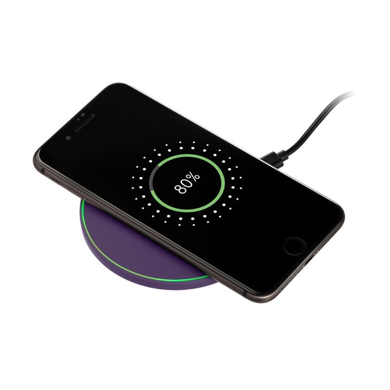 Беспроводное зарядное устройство 15W с подсветкой и покрытием soft-touch. Встроенная LED-панель позволяет создать эффектную подсветку логотипа посредством лазерной гравировки, удачно завершая композицию аксессуара.