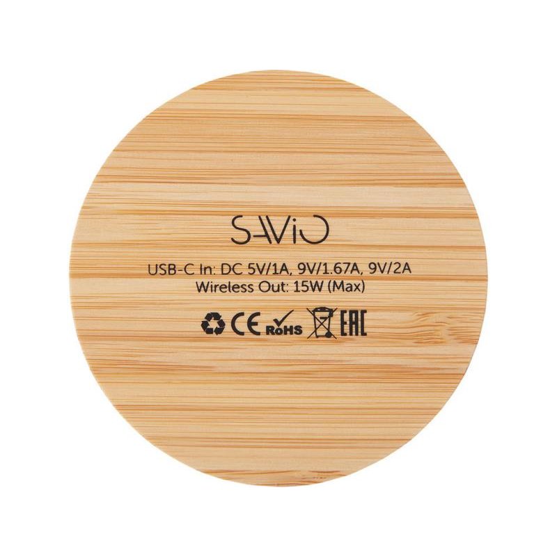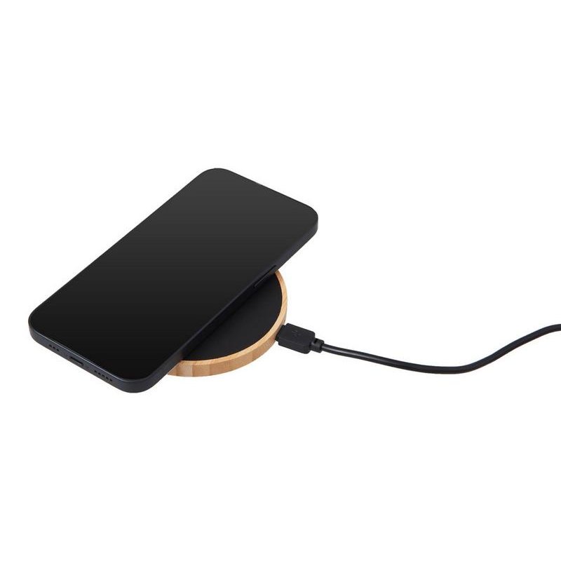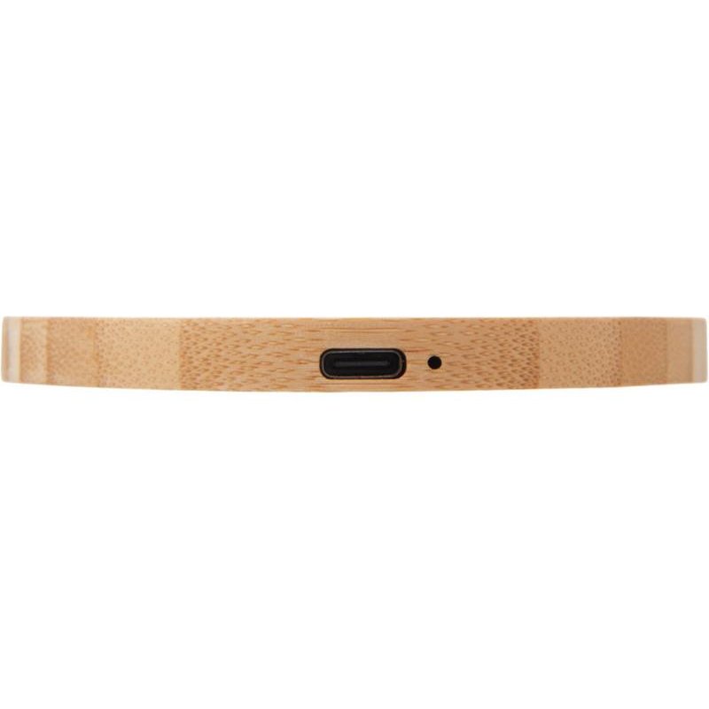 Заряжайте устройства с элегантностью и заботой о планете — сбеспроводным зарядным устройством на 15 Вт, выполненным из натурального бамбука и переработанного ABS-пластика. Это не просто функциональный гаджет, а стильный элемент интерьера, который органично впишется в ваш дом, офис или коворкинг. Благодаря поддержке быстрой беспроводной зарядки до 15 Вт, ваш смартфон восполняет энергию без лишних проводов и суеты. А встроенная белая подсветка логотипа добавляет изюминку: ваш бренд или инициалы мягко светятся при зарядке, создавая атмосферу уюта и индивидуальности. Идеальный выбор для тех, кто ценит экологичность, технологии и эстетику.