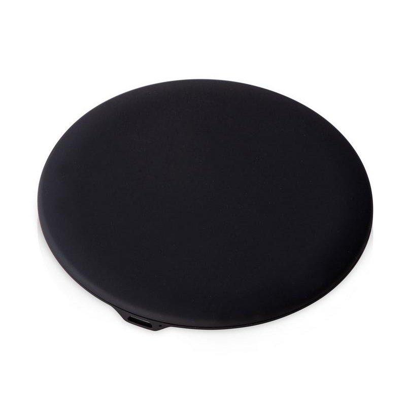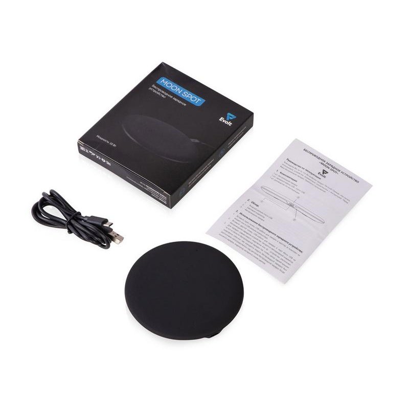 Moon spot — беспроводное устройство для зарядки в бархатистом корпусе софт-тач от Evolt. При гравировке верхний слой снимается, открывая подсветку — на бархатистом черном фоне светящиеся белым контуры выглядят особенно ярко и контрастно.