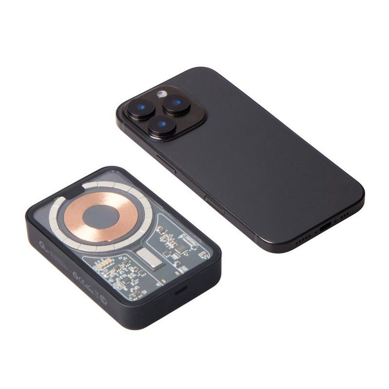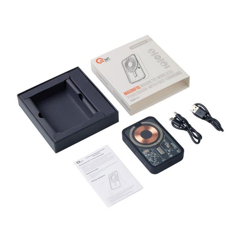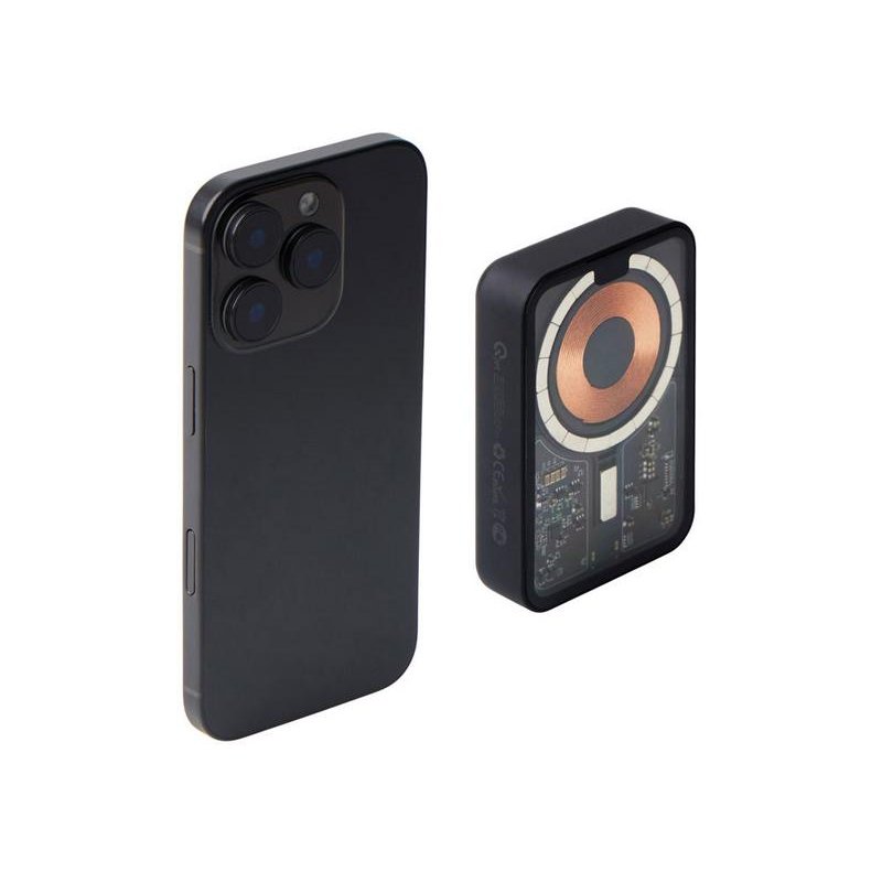 Беспроводной магнитный внешний аккумулятор MagnifIQ — технологичный и стильный power bank с эффектной прозрачной передней панелью, сквозь которую видны мощные магниты, индукционная катушка и электронная начинка. Ёмкость 10 000 мА·ч обеспечивает до 2–3 полных зарядов смартфона, а поддержка быстрой беспроводной зарядки до 15 Вт (с совместимостью QC/PD) делает процесс зарядки максимально быстрым и удобным. Двунаправленный USB-C порт позволяет как заряжать другие устройства, так и сам аккумулятор. Обе стороны корпуса подходят для нанесения логотипа: лицевая — через прозрачную панель, задняя — на приятное на ощупь soft-touch покрытие. Компактный, надёжный и сильный — идеальный технологичный продукт для продвижения и ежедневного использования. Поставляется в качественной упаковке с шубером, Двунаправленный кабель USB-C и кабель USB-A – USB-C в комплекте.