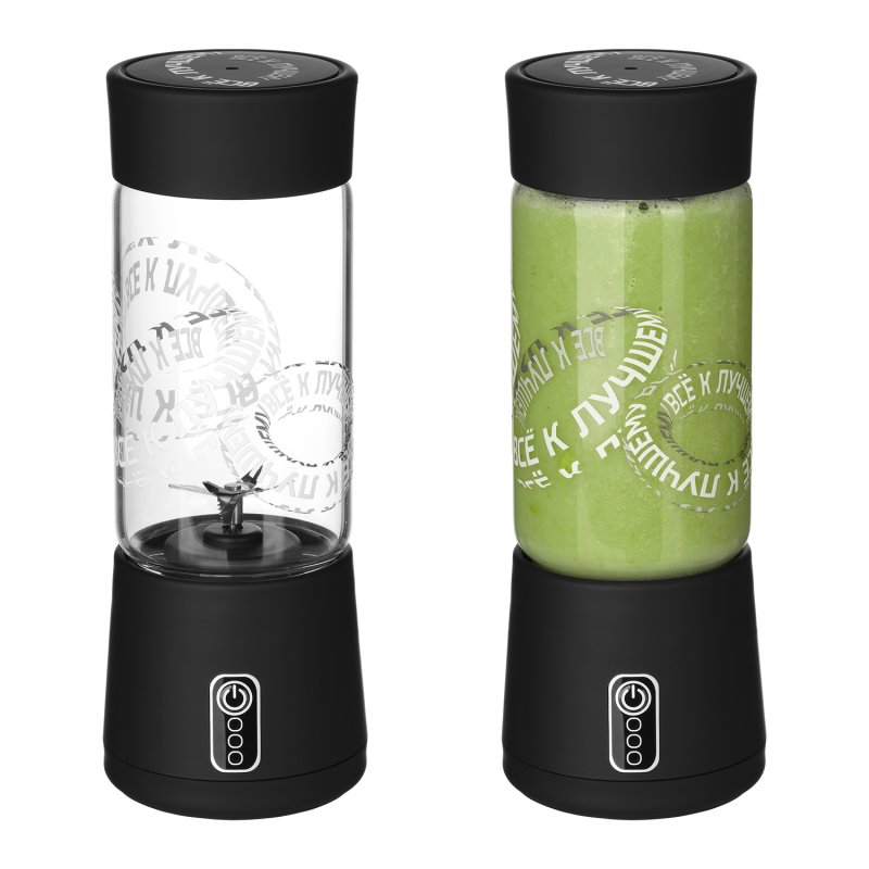 Колба выполнена из стекла, корпус – из PP-пластика, лезвия – из нержавеющей стали 304 марки.