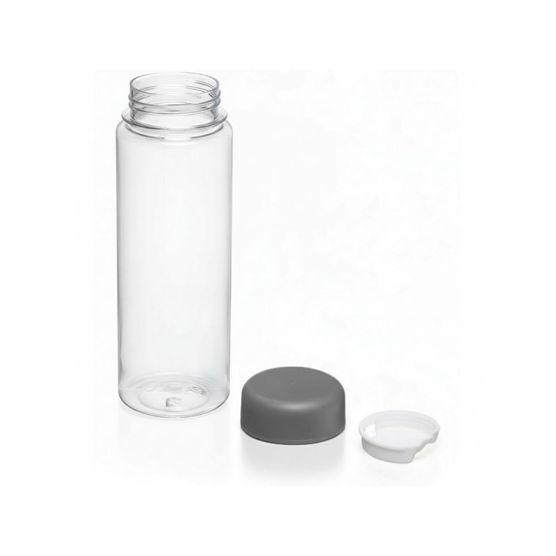 Лаконичный внешний вид позволяет нанести на аксессуар логотип компании. Прозрачный корпус дает возможность контролировать количество содержимого. Благодаря съемному фильтру в воду можно добавлять лимон, мяту и фрукты. Силиконовое кольцо предотвращает протекание, а крышка надежно закрывает бутылку.