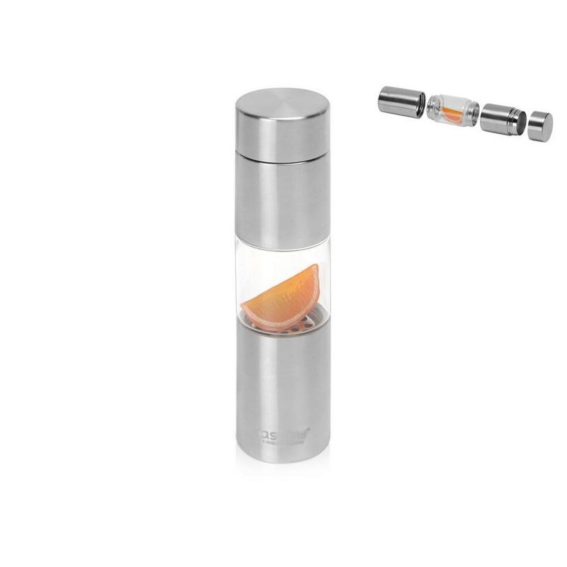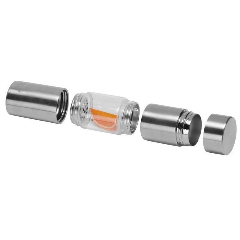 Бутылка для воды FLAVOUR U SEE от Asobu с прозрачным окошком посередине не только поможет вам приготовить питательную и вкусную фруктовую или ягодную воду, но и сделает ваш день немного ярче, позволив насладиться видом фруктов, а также дополнит ваш образ в качестве аксессуара. С обеих сторон прозрачной емкости, куда вы можете поместить дольки, размещены ситечки с крупными ячейками, которые не препятствуют свободной циркуляции воды и одновременно не пропускают плоды в основное отделение, где они могли бы мешать питью.