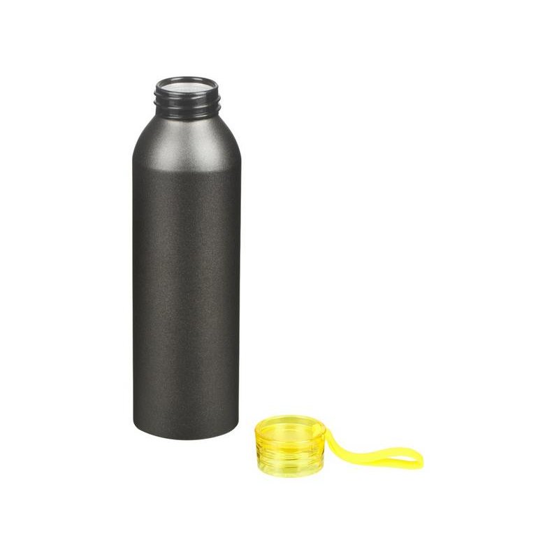 Бутылка для воды Joli выполнена из алюминия, что обеспечивает ей, при довольно солидном объеме (650 мл), сравнительно малый вес. Матовый корпус угольно-черного цвета создает интересный контраст с прозрачной крышкой яркого сочного оттенка, дополненной силиконовой петелькой в тон. Крышка плотно прилегает при закручивании, что обеспечивает Joli герметичность, а текстура покрытия корпуса не дает руке скользить при захвате.