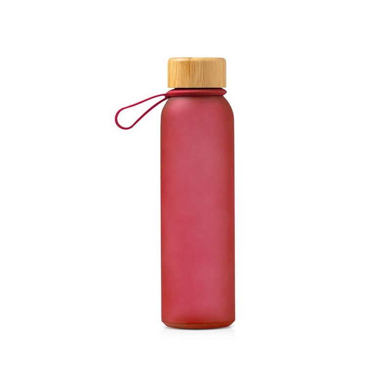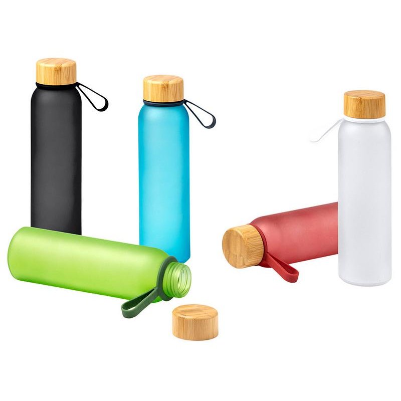 Полупрозрачная бутылка из переработанного стекла. Бамбуковая крышка с держателем. Объём: 500 мл. Поставляется в индивидуальной коробке.