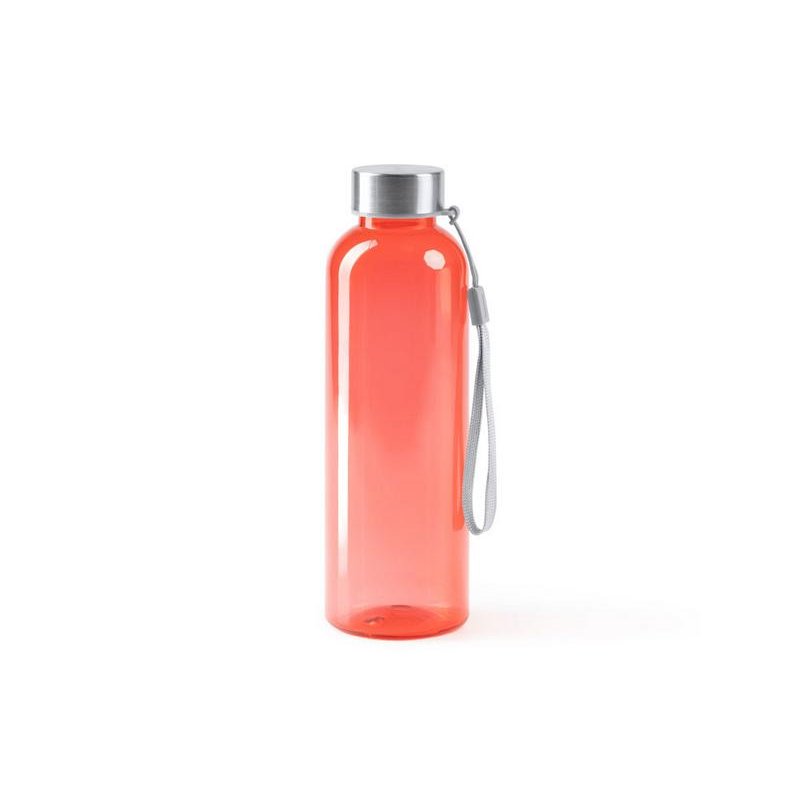 Бутылка из РПЭТ с полупрозрачным цветным корпусом. Емкость 600 мл. Ремешок для переноски в комплекте