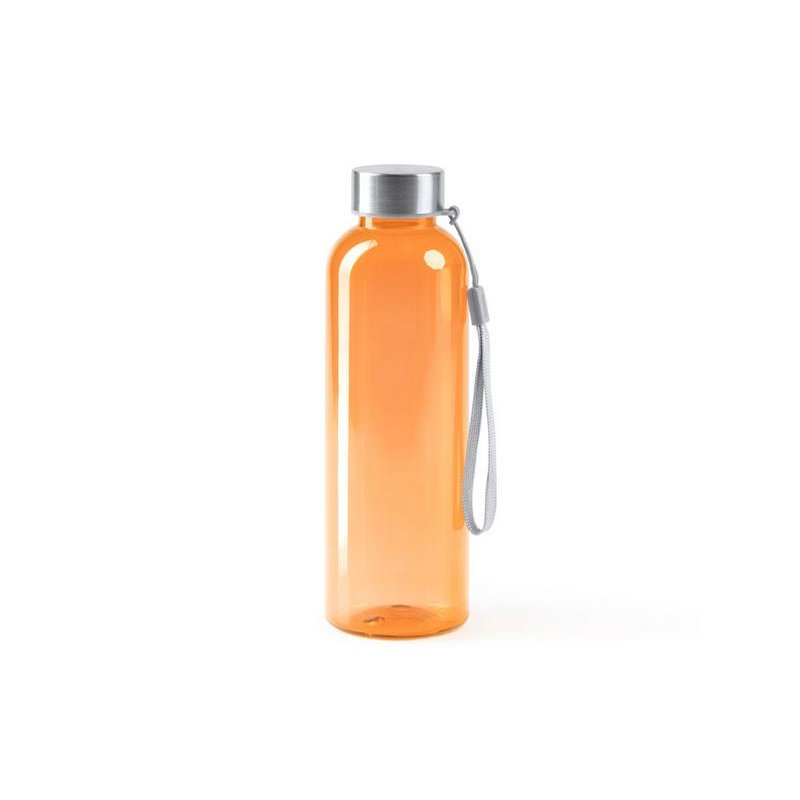 Бутылка из РПЭТ с полупрозрачным цветным корпусом. Емкость 600 мл. Ремешок для переноски в комплекте
