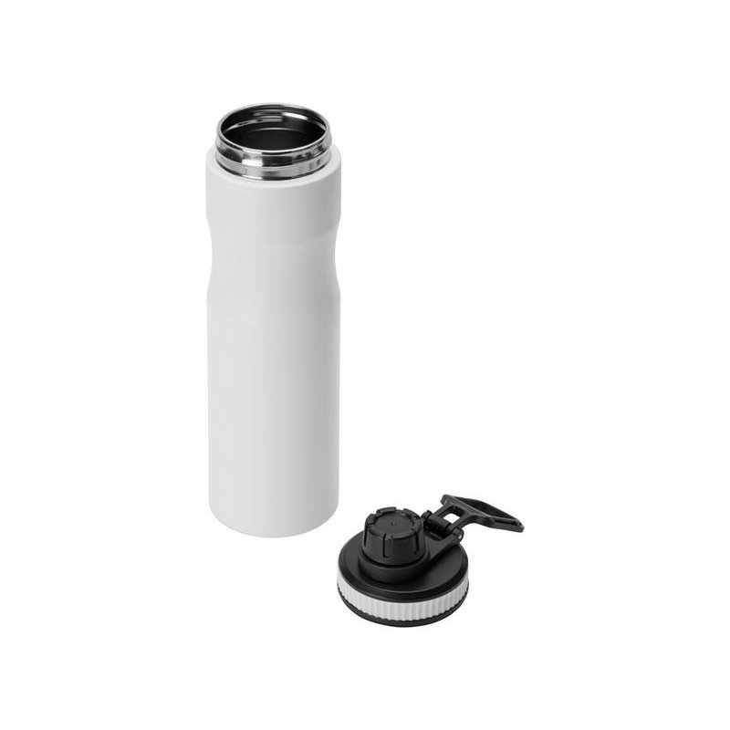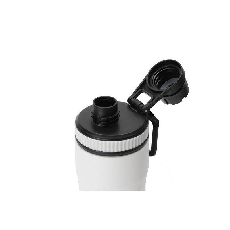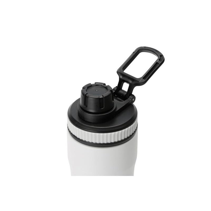 Крышка оснащена складной ручкой-держалкой, которая может быть использована для подвешивания или переноски, а также нетеряемым колпачком. Широкое питьевое отверстие позволяет быстро утолить жажду во время занятий спортом. Рельефное силиконовое кольцо по краю крышки поможет вам быстро и легко отвинтить ее от бутылки.