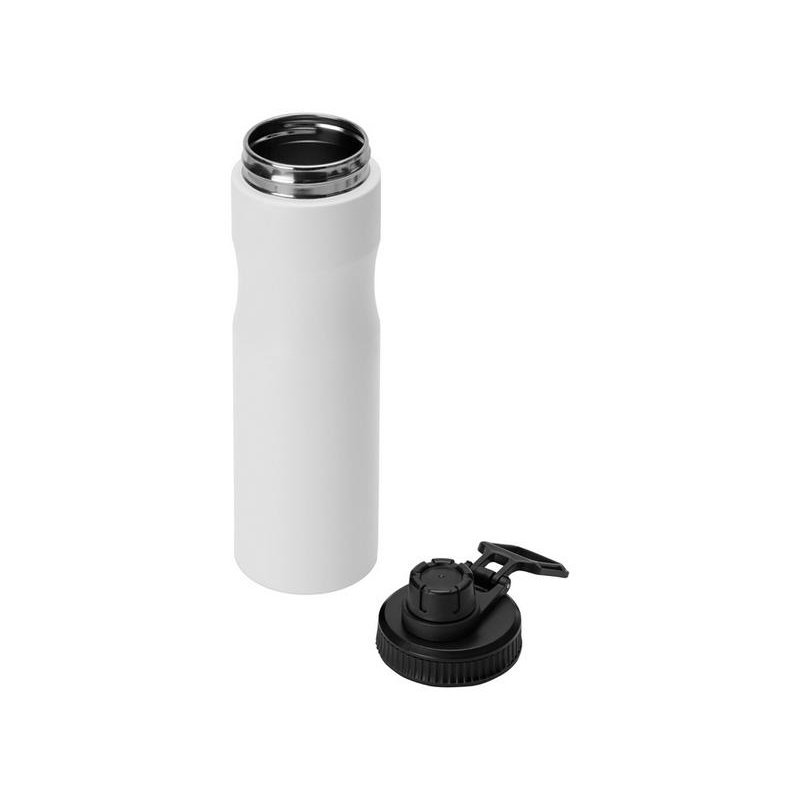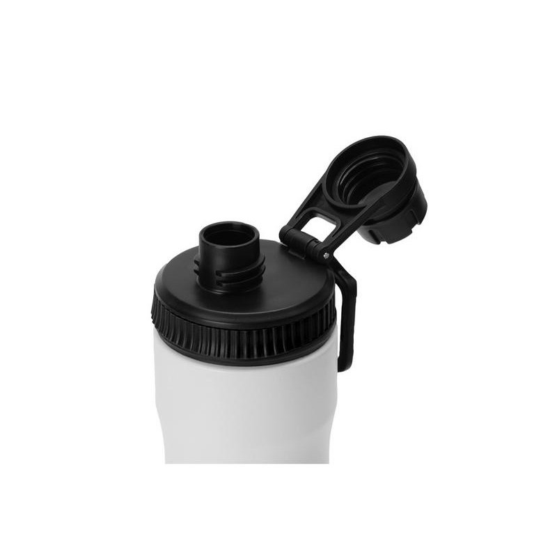 Крышка оснащена складной ручкой-держалкой, которая может быть использована для подвешивания или переноски, а также нетеряемым колпачком. Широкое питьевое отверстие позволяет быстро утолить жажду во время занятий спортом. Рельефное силиконовое кольцо по краю крышки поможет вам быстро и легко отвинтить ее от бутылки.