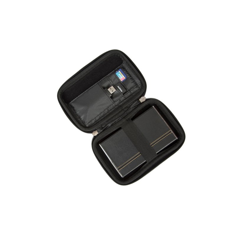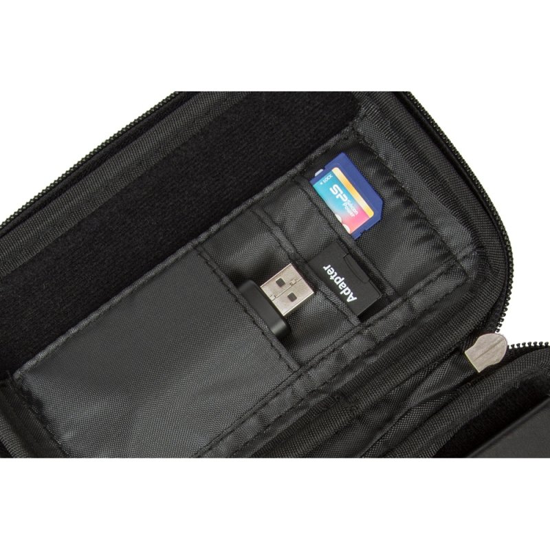 • Устройство надежно крепится внутри чехла специальной фиксирующей лентой, кроме того предусмотрены дополнительные внутренние карманы для кабеля, карт памяти и аксессуаров.