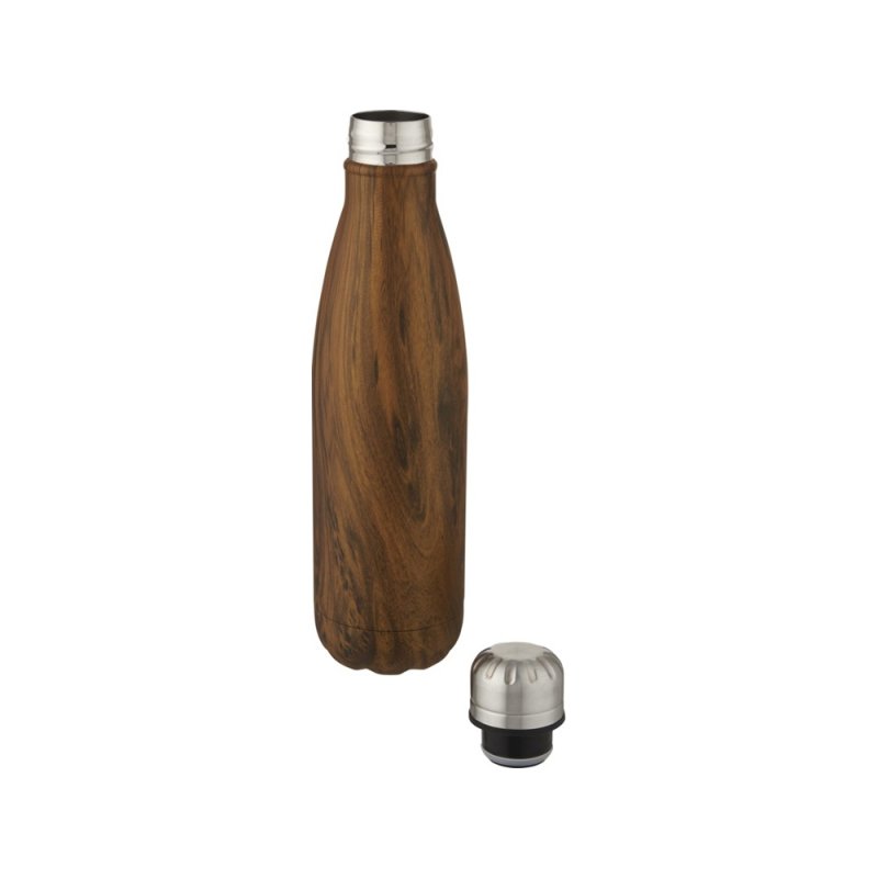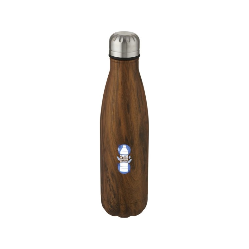 Бутылка из нержавеющей стали с вакуумной изоляцией с культовым дизайном и отделкой под дерево. Благодаря изоляции и нержавеющей стали 18/8 напитки несколько часов остаются горячими или холодными. Не содержит БФА, испытана и одобрена в соответствии с немецким законодательством о безопасности пищевых продуктов (LFGB). Проверена на содержание фталатов и одобрена для использования в соответствии с правилами REACH. Эта элегантная бутылка для воды, основание которой помещается в большинство подстаканников, является идеальным рекламным продуктом. Объем 500 мл. Рекомендуется мыть вручную. В подарочной коробке из переработанного картона.