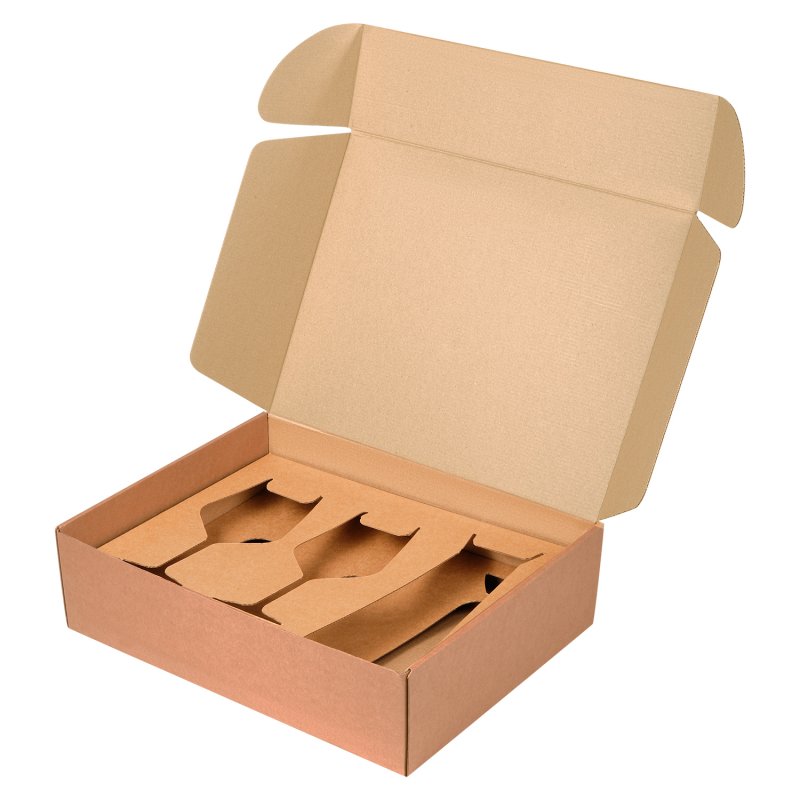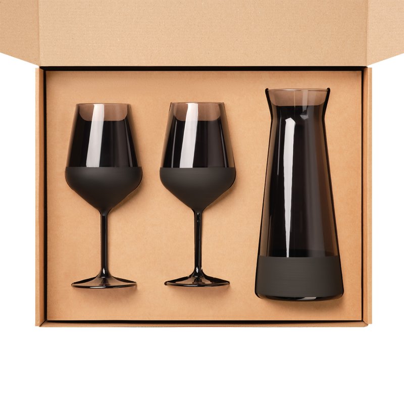 Виртуальный набор – полный комплект из ДВУХ ложементов под декантер + 2 бокала в большую универсальную коробку, крафт (арт. 21005.020)