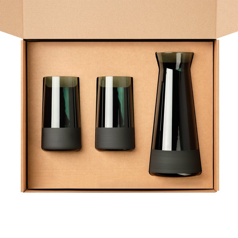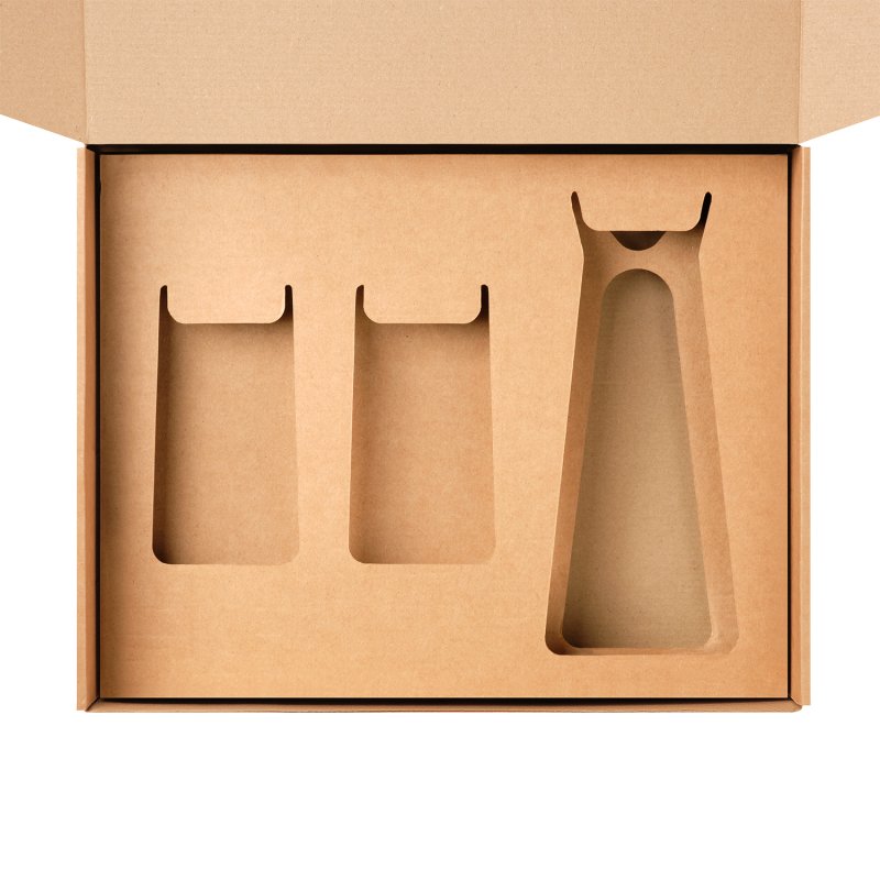 Виртуальный набор – полный комплект из ДВУХ ложементов под декантер + 2 высоких стакана в большую универсальную коробку, крафт (арт. 21005.020)
