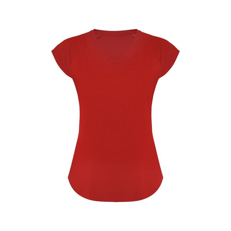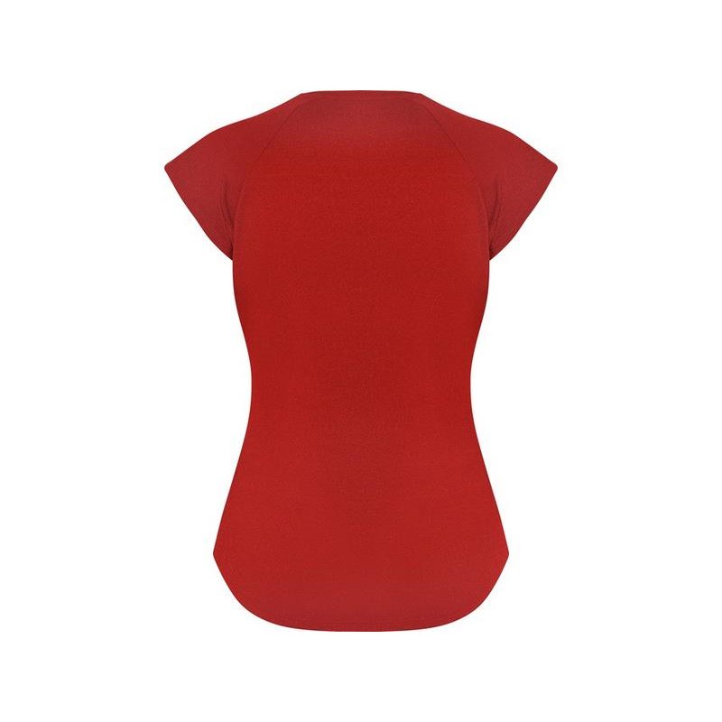 Спортивная женская футболка с коротким рукавом реглан. Вырез горловины V. Полотно из полиэстера на ощупь напоминающее хлопок. Приталенный силуэт.