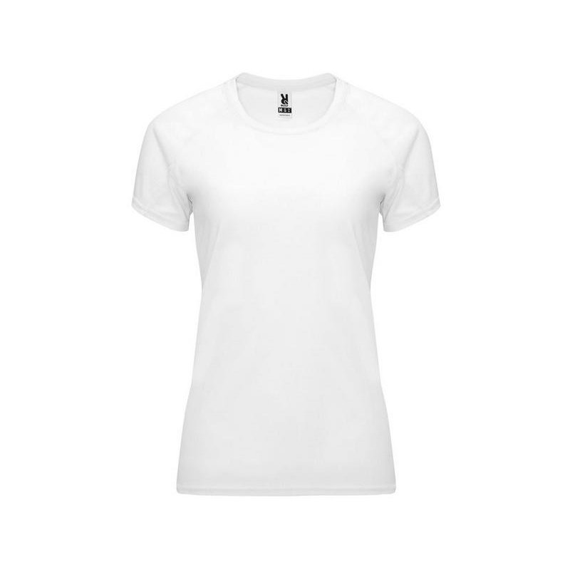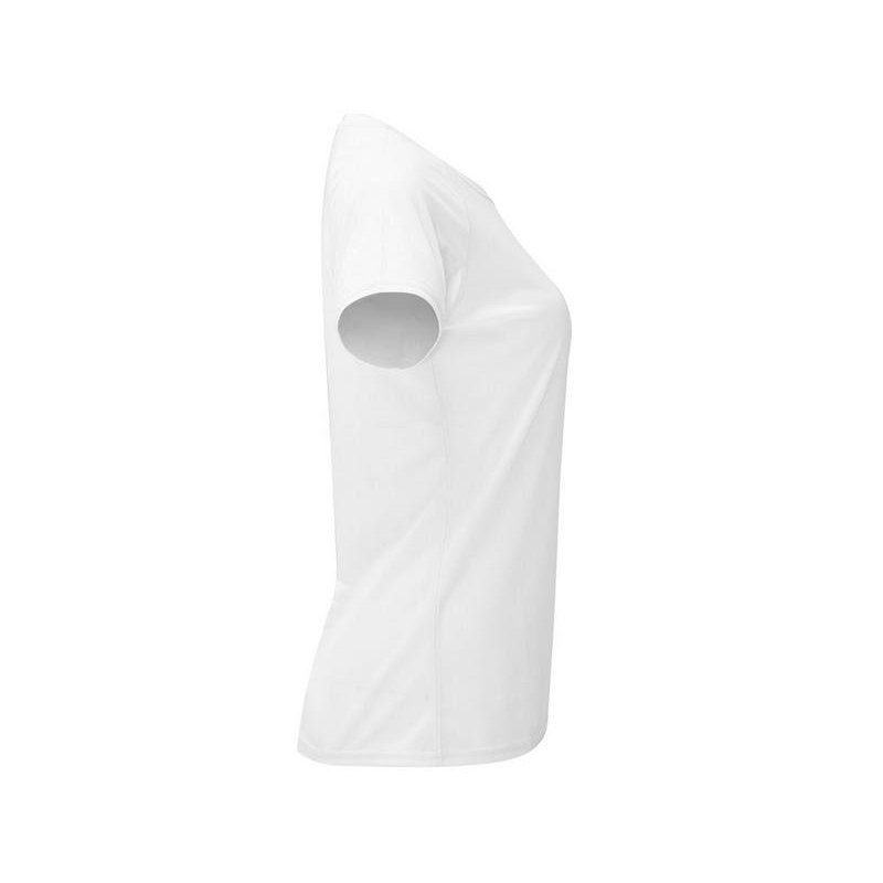 Спортивная футболка с коротким рукавом реглан для женщин. Круглый вырез горловины с отделкой плоским швом. Рукав сложного кроя для обеспечения дополнительного удобства при занятиях спортом. Отделка плоским швом с застилом по пройме и рукавам.