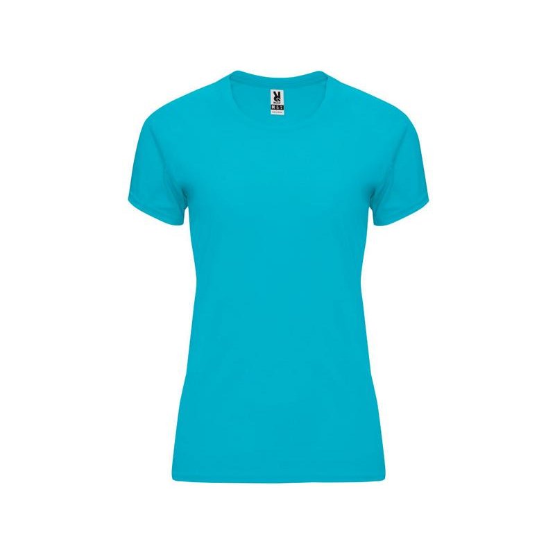 Спортивная футболка с коротким рукавом реглан для женщин. Круглый вырез горловины с отделкой плоским швом. Рукав сложного кроя для обеспечения дополнительного удобства при занятиях спортом. Отделка плоским швом с застилом по пройме и рукавам.