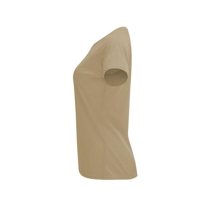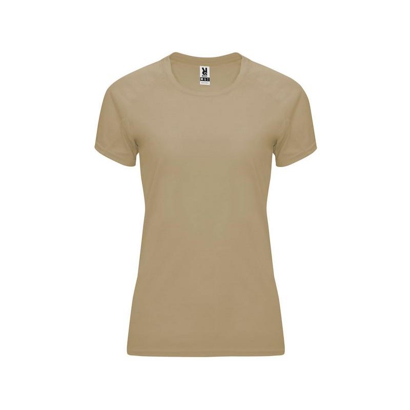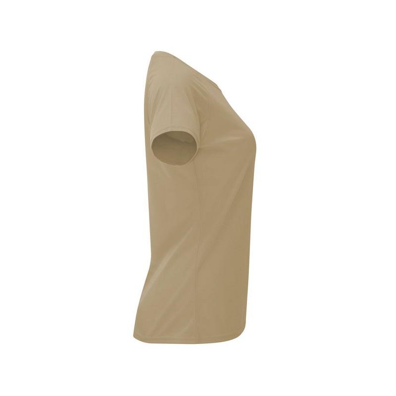 Спортивная футболка с коротким рукавом реглан для женщин. Круглый вырез горловины с отделкой плоским швом. Рукав сложного кроя для обеспечения дополнительного удобства при занятиях спортом. Отделка плоским швом с застилом по пройме и рукавам.