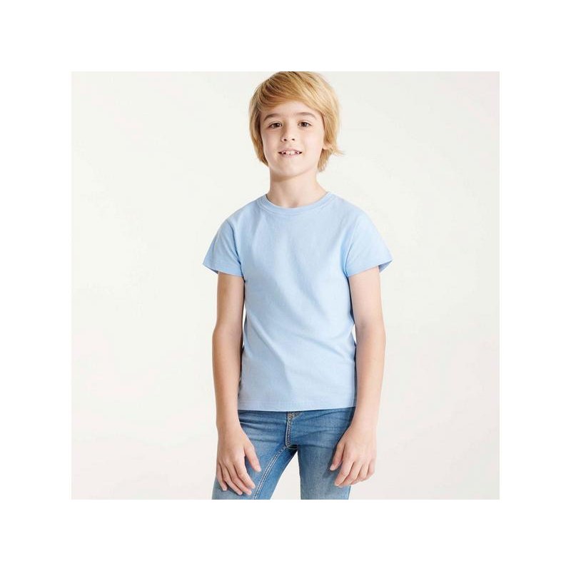Детская футболка с коротким рукавом с отделкой по горловине двойным рибом с эластаном. Футболка с боковыми швами. Широкая палитра цветов.
