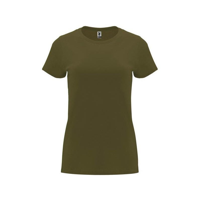 Женская приталенная футболка. Круглый вырез горловины обработан рибом 1х1. Шов горловины укреплен тесьмой.