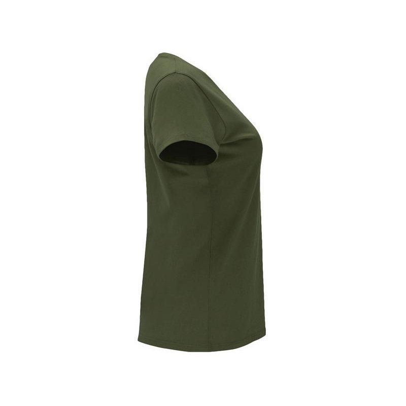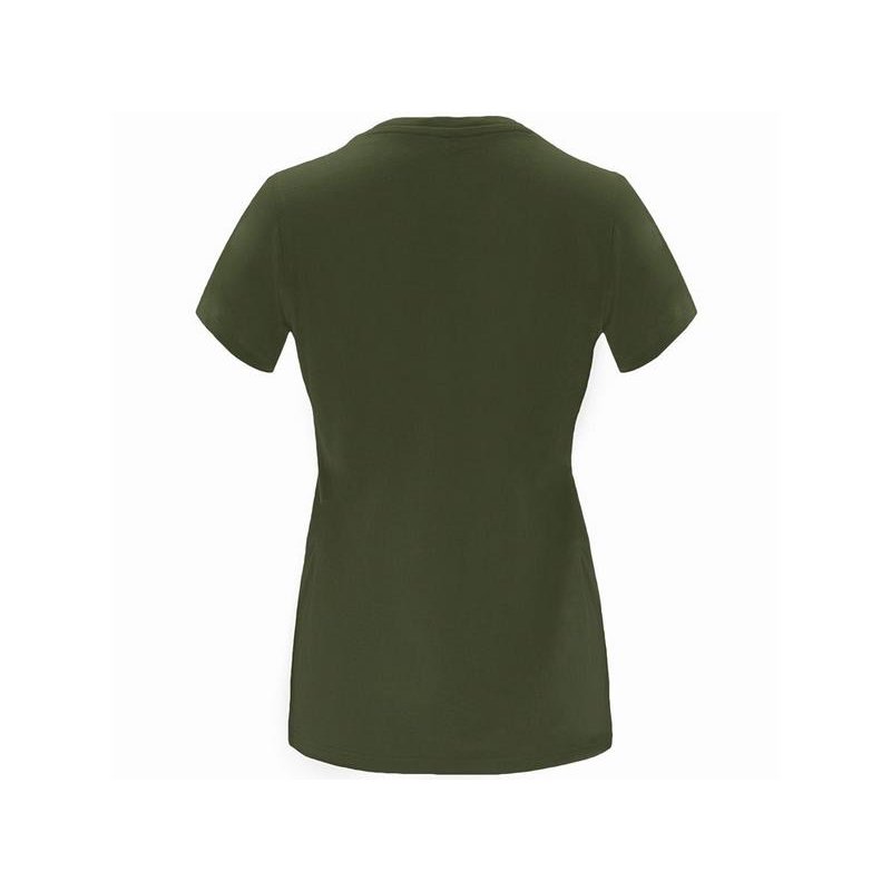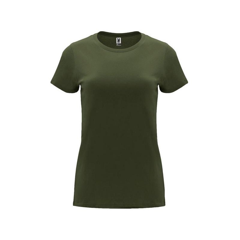 Женская приталенная футболка. Круглый вырез горловины обработан рибом 1х1. Шов горловины укреплен тесьмой.