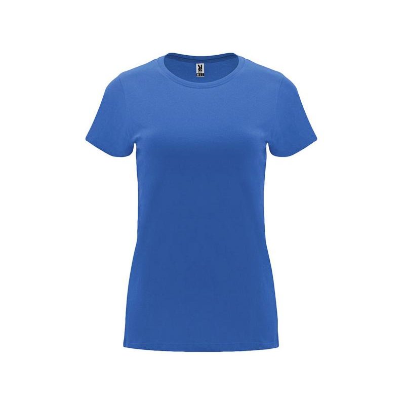 Женская приталенная футболка. Круглый вырез горловины обработан рибом 1х1. Шов горловины укреплен тесьмой.