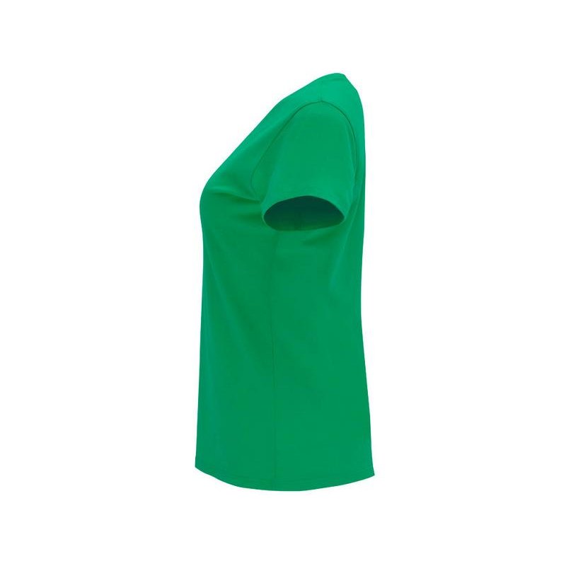 Женская приталенная футболка. Круглый вырез горловины обработан рибом 1х1. Шов горловины укреплен тесьмой.