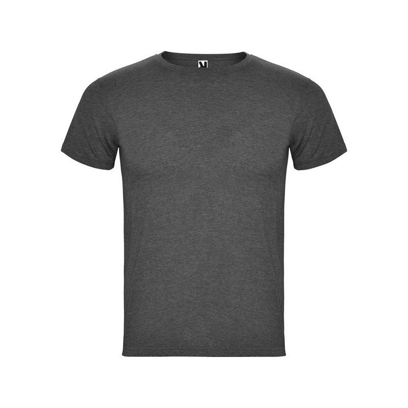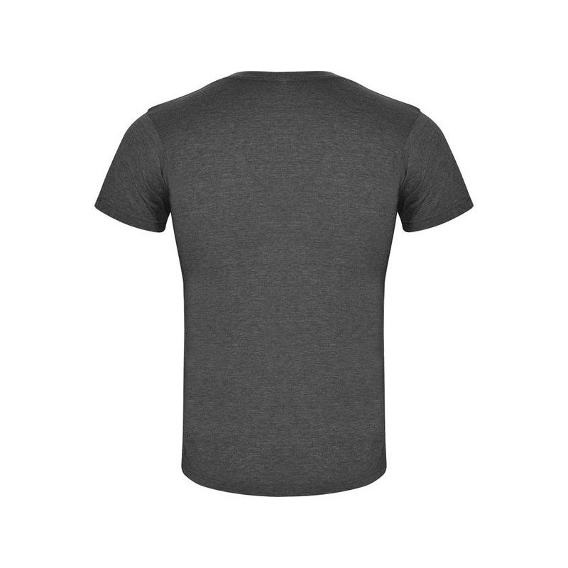 Футболка без боковых швов с коротким рукавом в меланжевом эффекте. Риб горловины 1х1 дополнительно укреплен двойной строчкой.