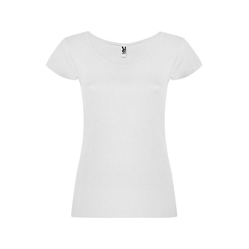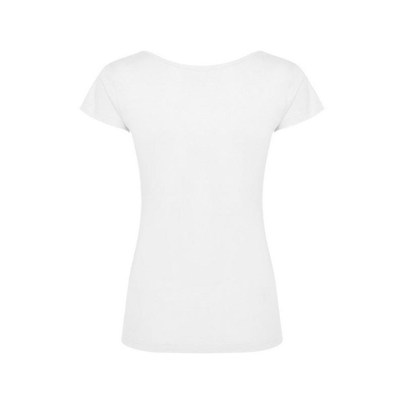 Прилегающая женская футболка с глубоким вырезом, обработанным рибом.