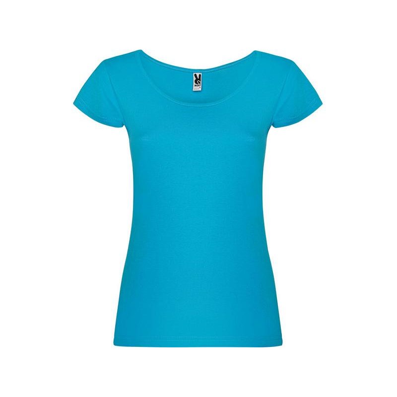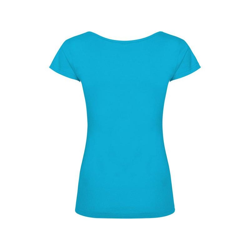 Прилегающая женская футболка с глубоким вырезом, обработанным рибом.