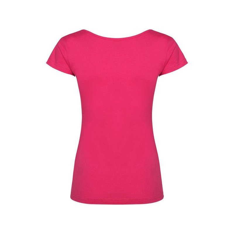 Прилегающая женская футболка с глубоким вырезом, обработанным рибом.