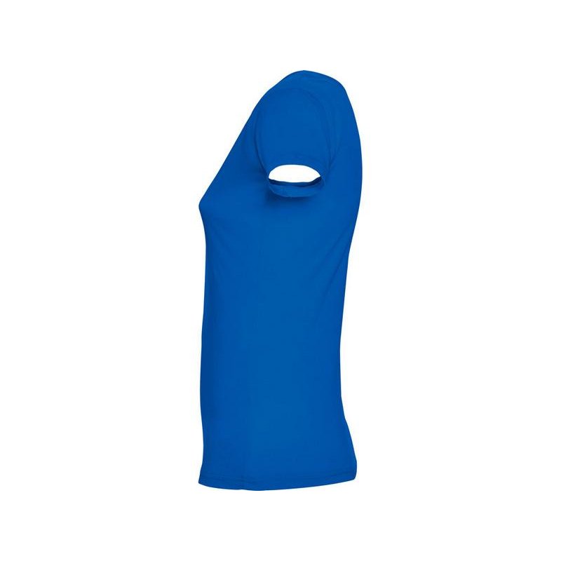 Прилегающая женская футболка с глубоким вырезом, обработанным рибом.