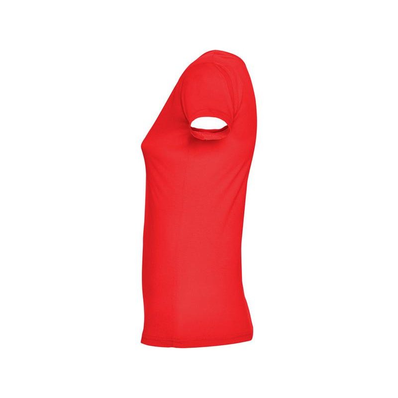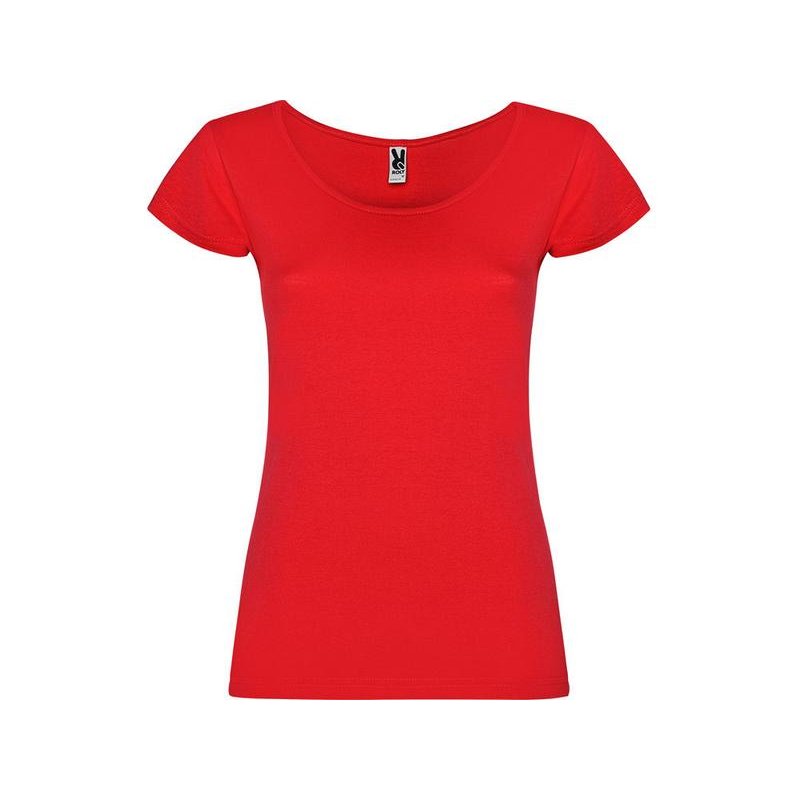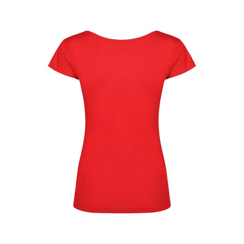 Прилегающая женская футболка с глубоким вырезом, обработанным рибом.